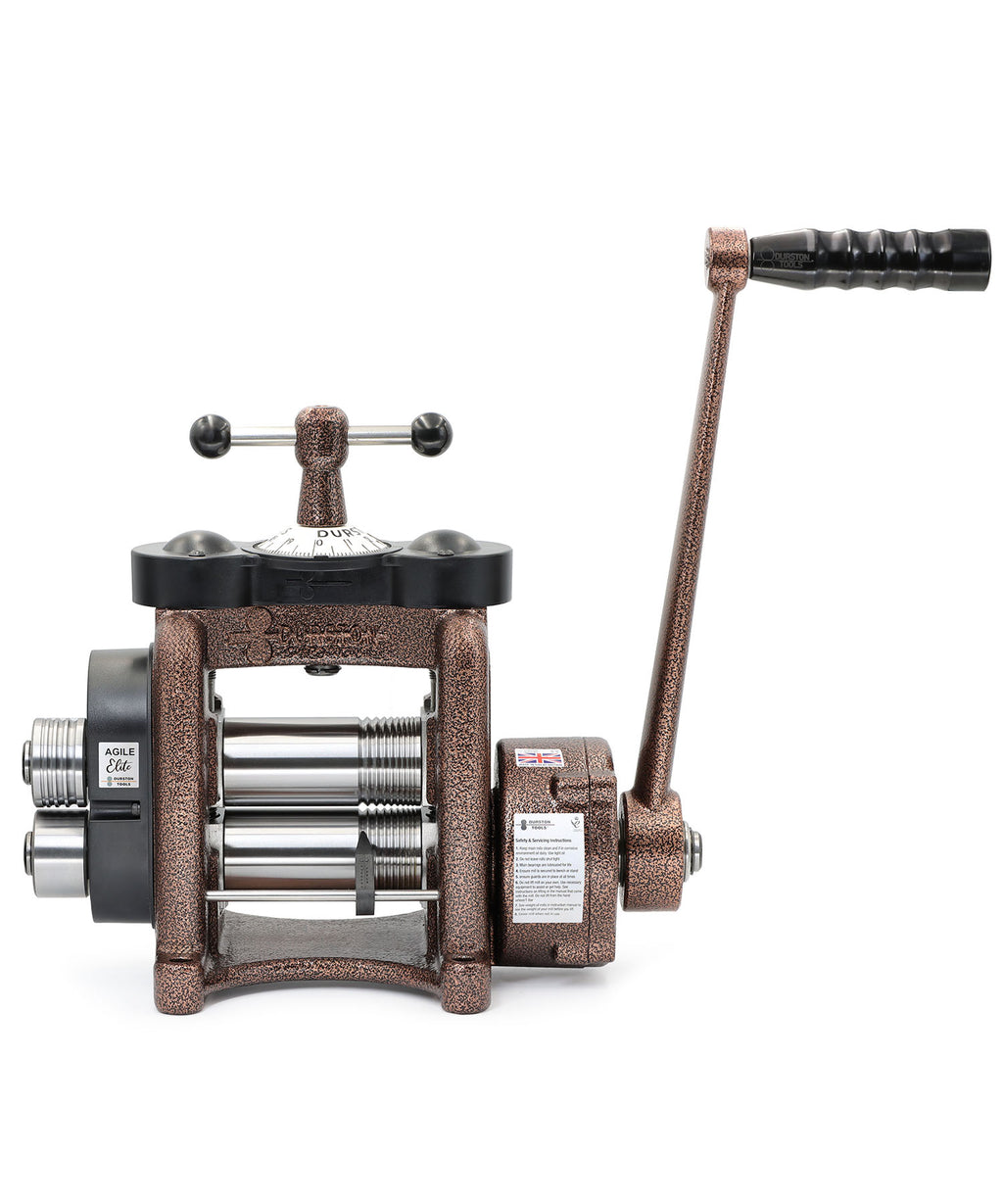 Introducing the Durston Agile Elite C110 Rolling Mill, a prestigious member of the King’s Celebration Edition series. This special edition rolling mill features a robust and smooth powder-coated copper finish, enhancing both durability and aesthetics.