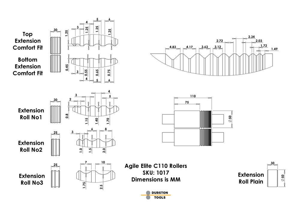 The Agile Elite C110 offers an expanded 75mm flat rolling area, making it easier to work on larger pattern plates and sheet metal projects. The main rolls include standard wire rolling grooves, ideal for combination rolling tasks. The adjustable T-bar enables quick, precise settings, while the ergonomic revolving handle reduces user fatigue during extended use.
