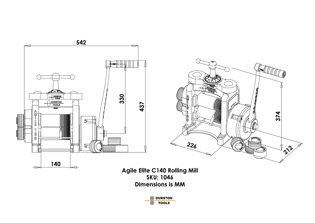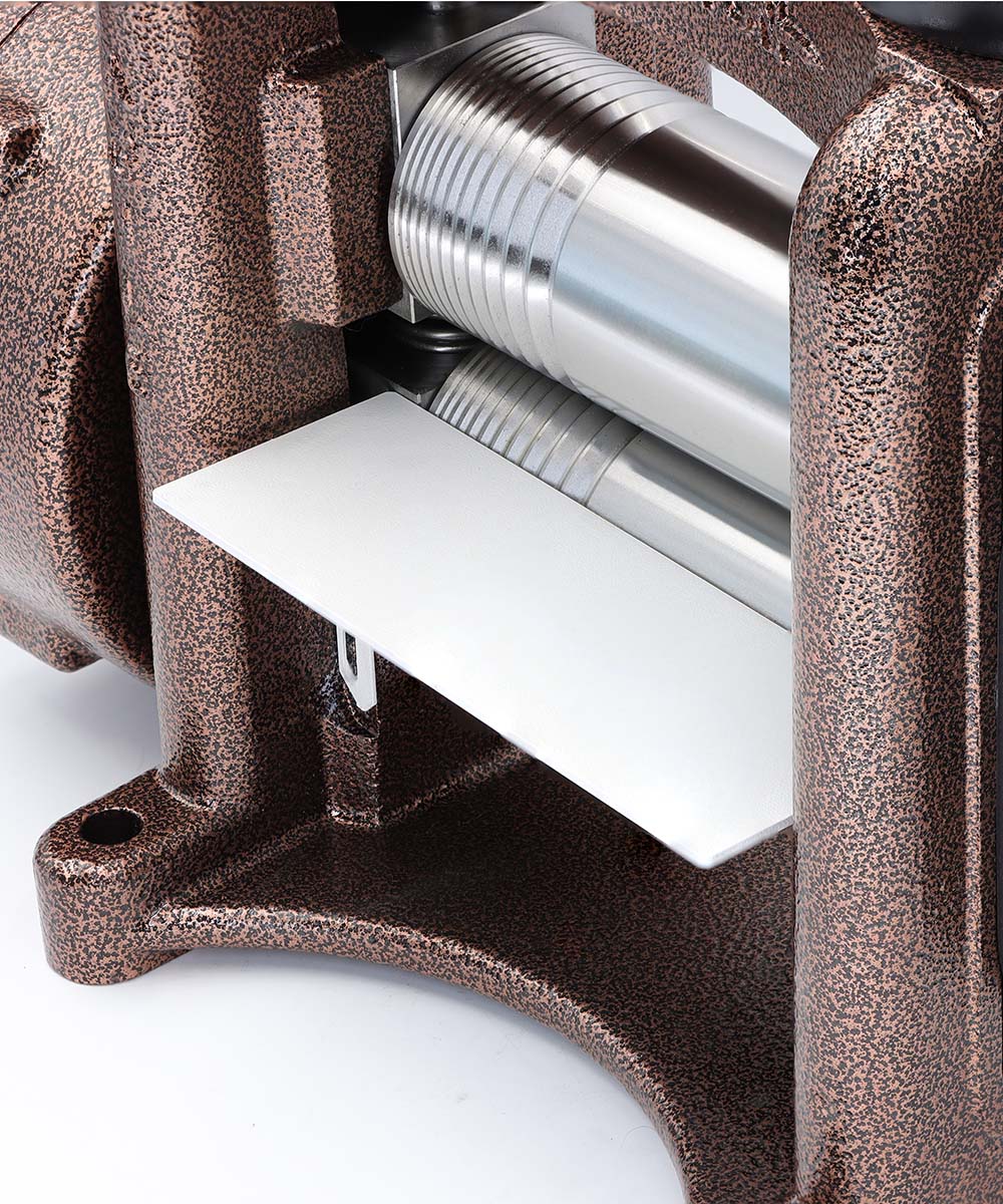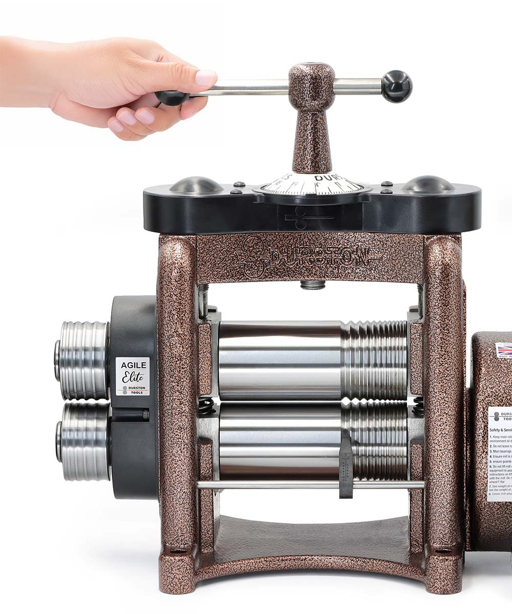 The Agile Elite C140 offers an expanded 90mm flat rolling area, providing more space for pattern plates and sheet metal, ideal for larger projects. Standard wire rolling grooves on the main roll make it a versatile combination mill. The adjustable T-bar enables quick, precise adjustments for smooth operation, complemented by an ergonomic revolving handle to reduce user fatigue during extended work sessions.