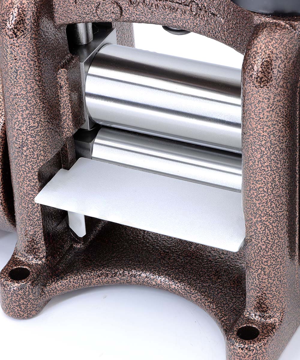 Introducing the Durston Agile Elite F110 Rolling Mill, part of the prestigious King’s Celebration Edition series. This special edition features a striking powder-coated copper finish that combines durability with elegant aesthetics, alongside enhanced features and a comprehensive set of side extensions for versatile metalworking.