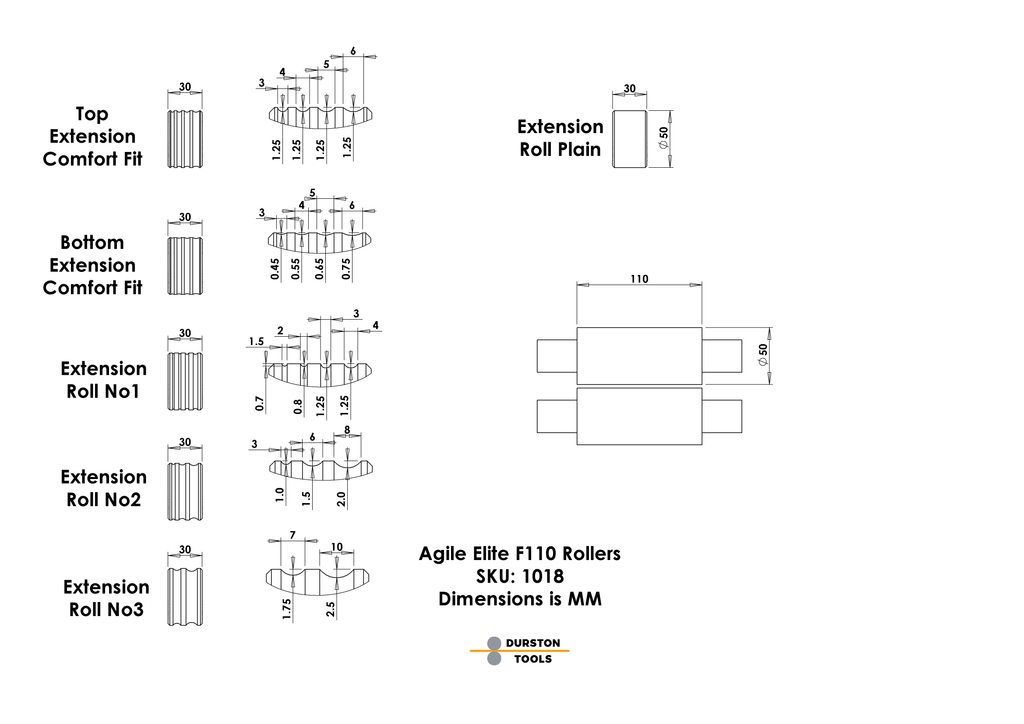 A white powder-coated rear catch tray improves visibility and ease of retrieving workpieces. The 4:1 reduction gearbox, a Durston hallmark, delivers smooth, effortless rolling. The mill includes a versatile array of extension rollers, featuring multiple D-shaped and comfort fit rolls ranging from 3mm to 6mm to suit various metalworking tasks.
