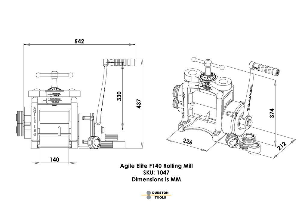 Introducing the Durston Agile Elite F140 Rolling Mill, the latest premium addition to the esteemed King’s Celebration Edition series. This special edition stands out with its robust and smooth powder-coated copper finish, enhanced features, and a comprehensive set of side extensions designed to simplify your metalworking projects.