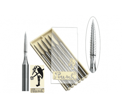 Busch fig.194, also known as the Krause Flame bur, is a precision tool designed for fine goldsmith work. It features a delicate and pointed flame shape, perfect for intricate detailing. Made from high-quality carbide, it offers long-lasting sharpness and is ideal for working with hard materials like white gold, platinum, titanium, and jewelry steel.