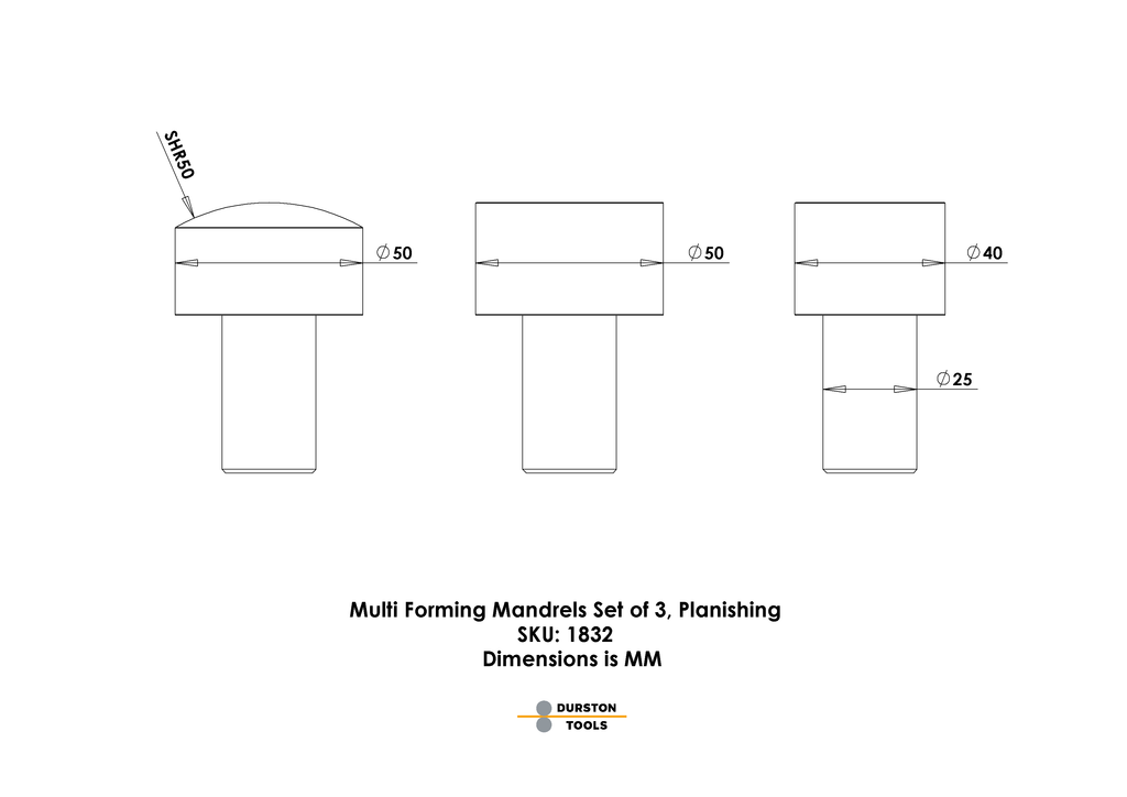 Durston 多功能成型砧心轴 3 件套 – 平整