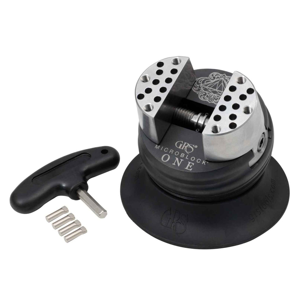 MicroBlock® One 专为追求稳定可靠和轻松移动的珠宝制作者精心打造。其自动定心钳口和低调外形,让您即使在显微镜下也能轻松掌控宝石镶嵌和精细雕刻工作。得益于集成式制动系统,您可以调节虎钳的旋转角度,从完全自由旋转到锁定,简洁的轴承结构确保操作顺畅、持久耐用,且价格实惠。